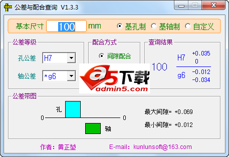 公差配合查询是免费、绿色、小巧、实用的工具软件。符合《GB/T 1800.3-1998》和《GB/T 1801-1999》中公差与配合的规定。