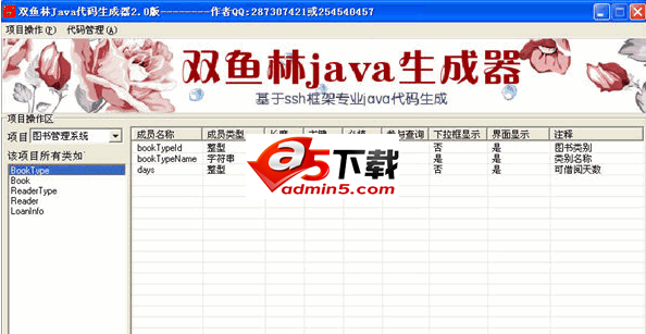 双鱼林java代码生成器是一款为程序员设计的代码生成工具。他是基于SSH框架的struts2+hibernate框架,目前能实现整个项目一次性生成,直接导入myEclipse可以用的,主要包括了struts2和hibernate配置文件自动生成,以及javabean领域层,控制层,业务逻辑层和界面层代码的自动代码。