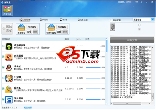 预装宝是一款支持多台android、ios设备同时安装应用的软件。主要服务于手机卖场、手机维修店、手机门店等机手出货量大的商家,使用预装宝可以快速并同时安装多款应用。