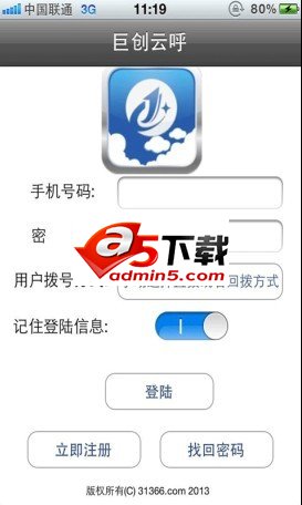 巨创云呼网络电话,国内通话最清晰,最流畅,最实用的手机通讯软件,免费下载安装。巨创云呼特点,超省钱,超实惠,超清晰。软件操作简单方便,界面清晰简洁,是您办公,生活首选的通讯软件, 0月租0漫游,绿色软件计费准,欢迎你的使用!