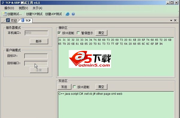 TCP/UDP测试工具是运行于Windows操作系统上的一种网络协议及数据包测试和调试工具。该工具可发送和接收TCP,UDP数据。主要用于在网络通讯程序开发时,测试TCP或UDP通讯连接和测试数据的接收和发送情况。该工具通过直观友好的界面实时展示发送和接收的数据。