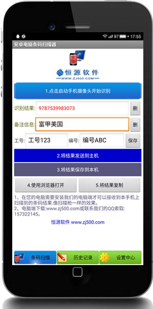 安卓电脑条码扫描器是一款是一款安卓手机条码扫描器应用软件,用户只需将安卓手机能和电脑连接,就像扫描枪一样的效果,还支持当下流行的二维码识别,软件还支持摄像头进行一维码,二维码识别,软件界面美观简洁、简单全面、实用方便,可快速上手,轻轻松松完成日常安卓手机条码扫描功能,真正做到简单全面实用。是用户实现安卓手机条码扫描功能的好帮手。