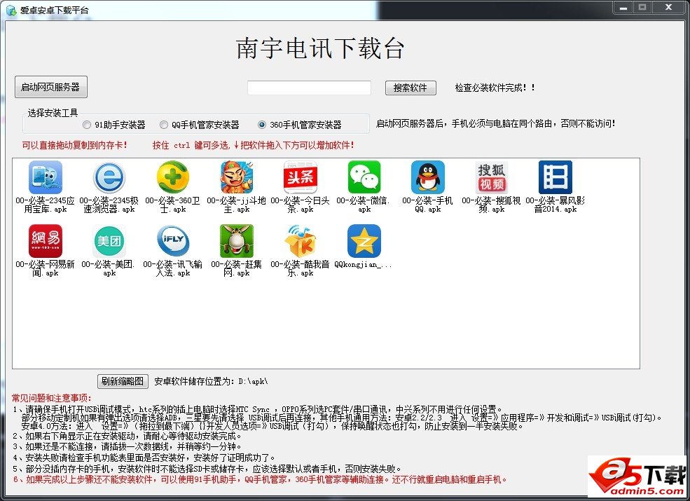 4.支持拖拽下载或增加安卓软件;