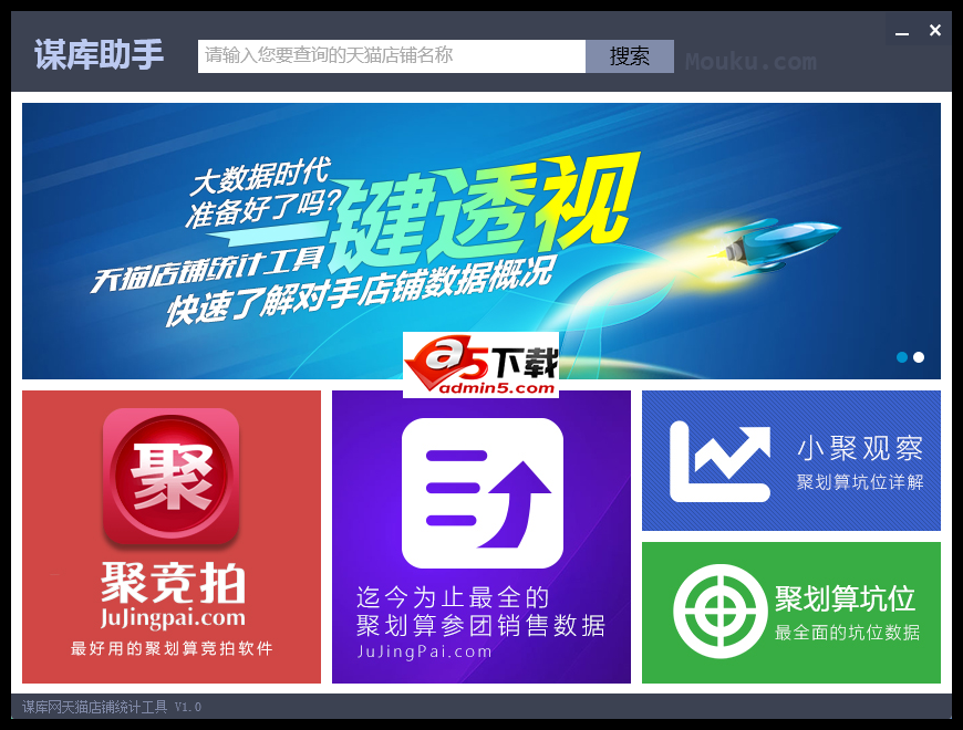 谋库助手是一款淘宝天猫店铺销售计算器,更是一款天猫店铺数据统计分析工具,免费下载试用。谋库助手让商家快速了解店铺销售数据概况,通过天猫店铺销售数量、销售额、客单价、销售额占比、销售数量占比、财务报表等360°全方位透析天猫店铺全面数据体系,大数据时代等你来解析!赶快下载试试吧!