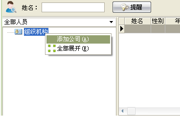 在左侧列表右键点击“组织结构”,选择“添加公司”一项