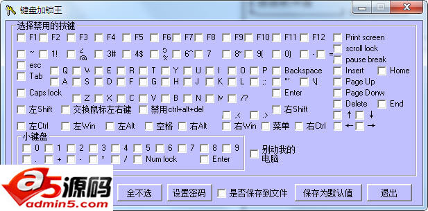 键盘加锁王是一款可以帮你锁住键盘按键的工具,你可以指定键盘上的某个按键无效,并且这款工具还有直接锁屏功能,直接勾选别动我的电脑别人就无法操作你的电脑了。