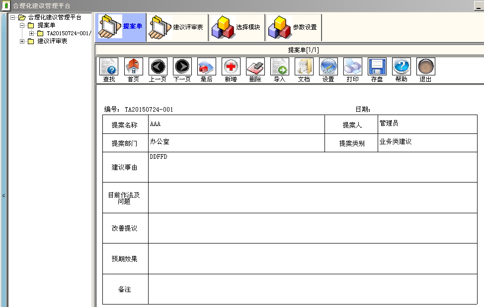 三驱合理化建议管理系统主要用于演示使用三驱自定义工作平台构建的应用系统的效果,本系统是使用三驱工作平台模块设计工具制作出各个功能模块,再组合到三驱工作平台中,在此构建过程中无需编写一行程序。所制作的功能模块包括:提案单模块和建议评审模块,这些模块都是来源于合理化建议管理工作中常用的表格,并在三驱合理化建议管理系统中实现信息化管理。