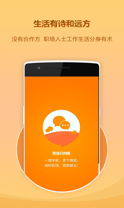 微信分身版,一部手机可安装多个官方微信分身,同时运行互不干涉。操作简单,只需一键点击分身制作,静待安装分身数秒便可获得。源自官方微信,体验一模一样,技术强大,不占内存,消息不延迟。