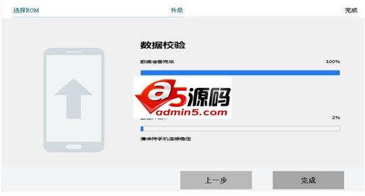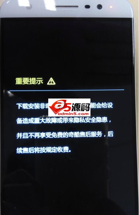 6、等校验完成,这时关掉手机,按住音量上下键并插入USB线,直到手机屏幕上出现“重要提示 下载安装非....”字样即进入fastboot模式,然后开始刷机