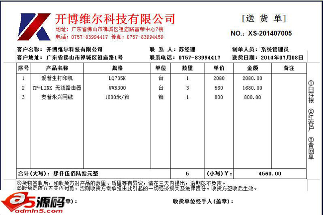 1、打印样式可按要求修改、可灵活拓展计算公式、单据录入界面和单据查询界面可自由扩展。