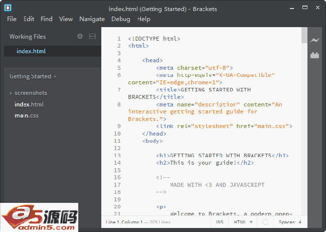Adobe推出的免费开源文本编辑器Brackets。该编辑器支持Windows,Mac以及Linux操作系统,内置HTML、CSS、以及JavaScript编码,可以用于编写HTML,CSS以及JavaScript。该产品目标用户为网页设计师和开发人员,其中的Live Preview功能可以在浏览器预览和源代码之间轻松切换,可有效提高网页编辑速度。