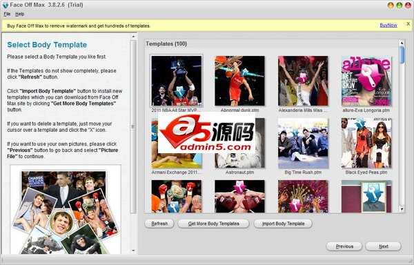 Face Off Max-简单有趣的变脸工具,可把任何杂志封面上的明星、名人换成任何一张脸,或者通过软件内置模版制作搞怪图片,具有真实人脸融合技术,轻松婉转人脸照片移花接木,Face Off Max 就是为恶搞图片而诞生的软件。