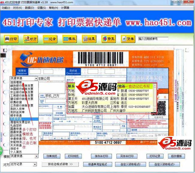 451打印专家全名为451打印专家-打印票据快递单软件,是一款专业化的免费快递单打印软件与免费票据打印软件,可以为用户提供各种各样票据模板,快递单模板,模板制作技术,让用户告别手写时代,轻松完成各项打印工作。