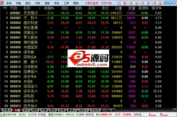 8.敲击“57”回车后,就出现“无基金A股”报价表。