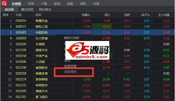 1.支持多股同列(右键调用,ctrl+4,+6,+9