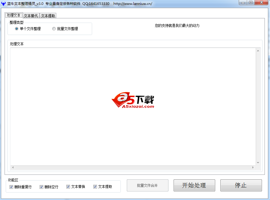 蓝牛文本整理精灵可以在复杂的文本或是批量文件中快速批量文本文件整理如 文本提取 文本替换删除 文件合并 删除重复行 删除空行 等等, 软件操作介面简单 必须安装Net Framework 3.5以上