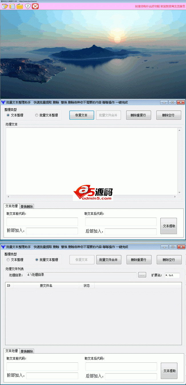 可以在复杂的文本中快速批量提取你想要的文本内容 同时也批量替换,删除,删除重复内容,删除空行,多个文件合并 等等