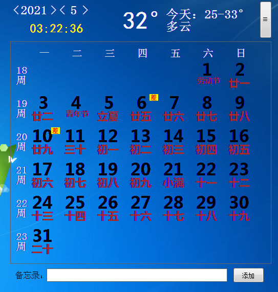 蓝牛日历精灵 蓝牛日历精灵是一款放置桌面最实用的日历软件,蓝牛日历精灵可以轻松管理待办事项 日程各种记录,记录出差 休假 调班 等等 软件还集成有计算器 帮助你日常计算数据 ,软件操作简单 绝对是电脑必备软件.