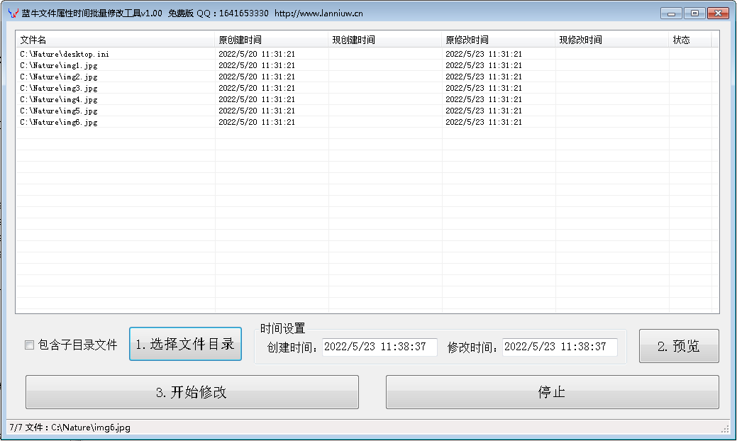 在日常中如果你需要更改多个文件的创建时间或是修改时间 蓝牛文件属性时间批量修改工具就可以快速帮助你一键批量更改,软件只需导入文件 然后设置时间即可。