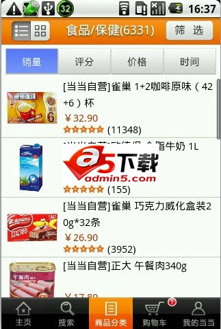 当当网Android手机客户端,包括商品搜索、浏览、购买等功能,能够提供和当当网一样优质的购物体验,为手机用户打造更加方便快捷的移动生活。打开手机客户端,就能看到当当网正在促销的低价商品,用手机抢购,让您更快一步。