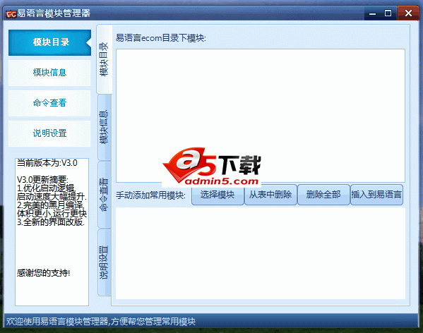 1.双击运行后,自动显示易语言目录下默认ecom模块目录内的所有模块,可以双击查看模块的命令. 2.可查看模块的详细信息,及模块内命令的信息. 3.支持"文本方式查看"和"函数声明格式查看"两种查看命令方式. 4.可将模块直接引入到易语言ide编程环境中. 5.可直接关联本机ec模块,并通过双击模块打开进行命令的查看.