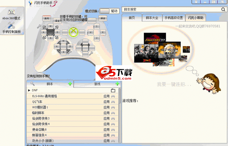 闪优手柄是闪优工作室自主研发的一款手柄助手软件。兼容所有的手柄,闪优手柄主要功能是把手柄的信号映射成驱动级的鼠标或键盘的信号,基本同真实鼠标键盘无异,可以让用户在众多不支持手柄的游戏中使用手柄,解决手柄用户闹心的事。实现了手柄的最大化运用:适合众多网络或单机游戏,为广大游戏用户提供方便快捷的手柄游戏功能,同时也可以简单的电脑操作,如简单的QQ聊天或文件管理等。