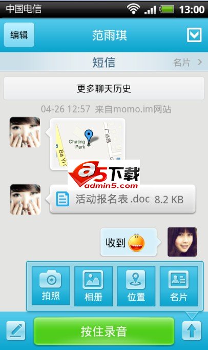 6. 【实用】支持短信名片,允许电脑通过momo.im网站与手机消息互通;