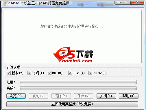 2345MD5校验王 V2.8可以对任意文件进行版本,文件时间,MD5值,SHA1值,CRC32值的校验。