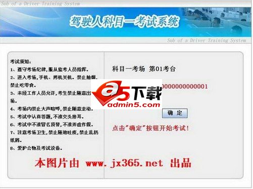 交规科目一理论模拟考试系统 2012(由 驾校365 jx365.net 开发)采用的是公安部“最新题库”并且软件中的“考试题库”“考试界面”“考试流程”和正式考试都完全相同,让你能预先知道考试的情况而不慌乱。另外软件功能强大,可以让你在最短的时间内掌握考试题库,并最终通过正式考试。本软件适用各类机动车驾驶人员科目一理论模拟考试。