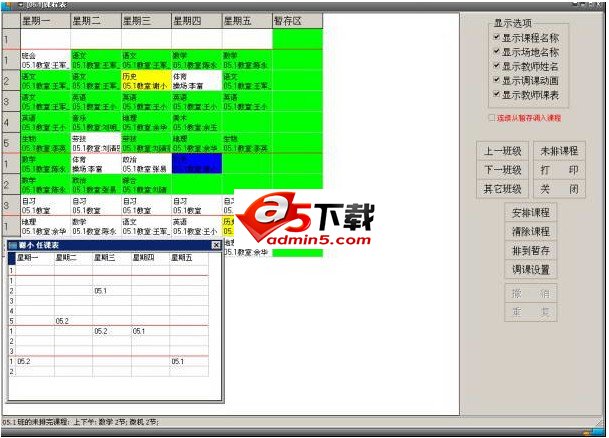 鼠标调整课表:电脑自动排课后,可能有些课程不符合用户的要求,这时需要用鼠标进行调整。