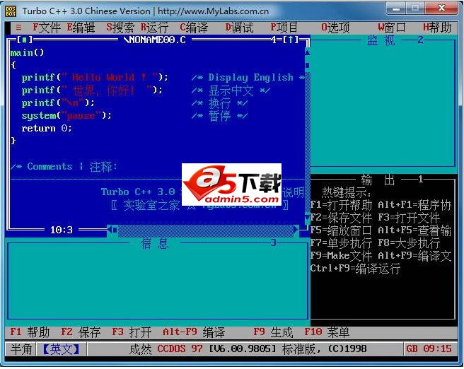 “Turbo C/C++ v3.0 汉化版”的主要功能: