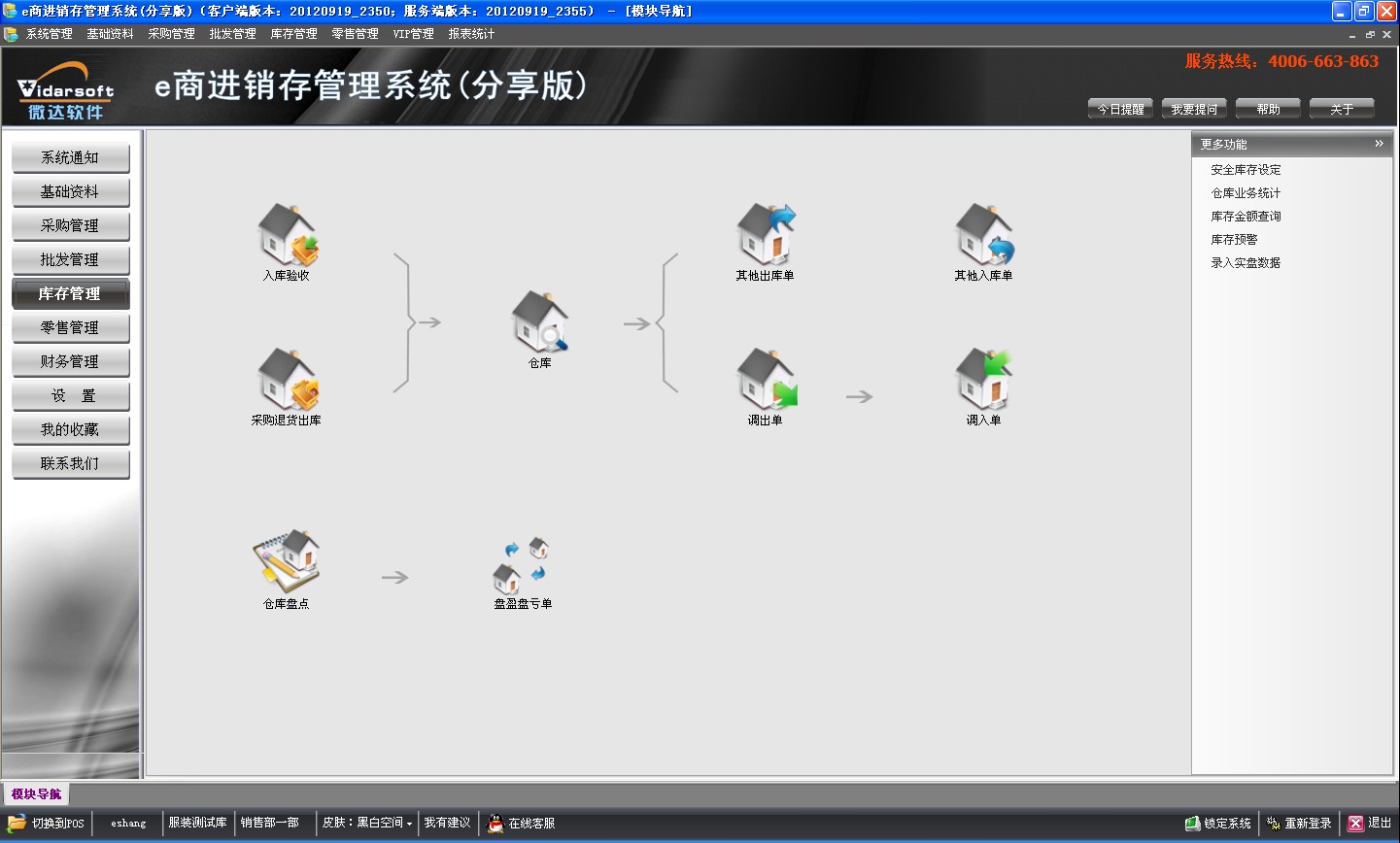 可以自动生成调库单号,货品及客户选择方便快捷,不限制每笔调库单货物笔数,随时可以打印单据。支持货品在不同仓库间随意调整。