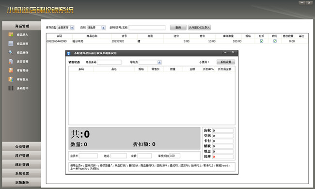 小财迷店铺收银系统是一款非常好用的收银软件,简洁化的前台收银管理,条理清晰的后台商品管理,支持各种外接硬件的接入,一台电脑即能打造低成本专业化的店铺收银系统。方便、简单的操作,有条不紊的后台商品管理,即使您是电脑操作的小白,也能一学即会。