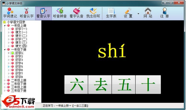 本软件内容包括:同步学课文、字词速记、每课测验、听音认字、看音认字、听音辨音、看字认音、我念你写及生字表等……软件特色鲜明,有很强的训练模块,每一课的内容都采用多种的测试方法,保证学得快、记得牢,学习效果佳!