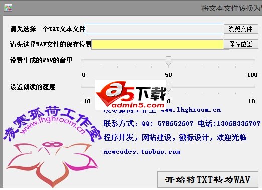 文本文件朗读生成语音WAV文件软件用于将文本文件中的文字自动朗读合成 WAV音频文件,仅支持WINDOWS7 和WINDOWS8 系统。