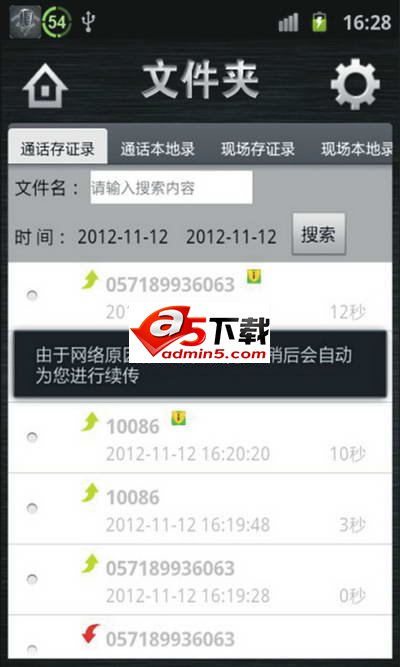 5、存证录:高清双向通话录音,对录音数据和相关信息即时加密上传云存储,用户可根据需要随时申请公证处调取并出具公证书,方便有效地证明通话时间、通话主体、呼入呼出、通话内容、通话时长等信息。