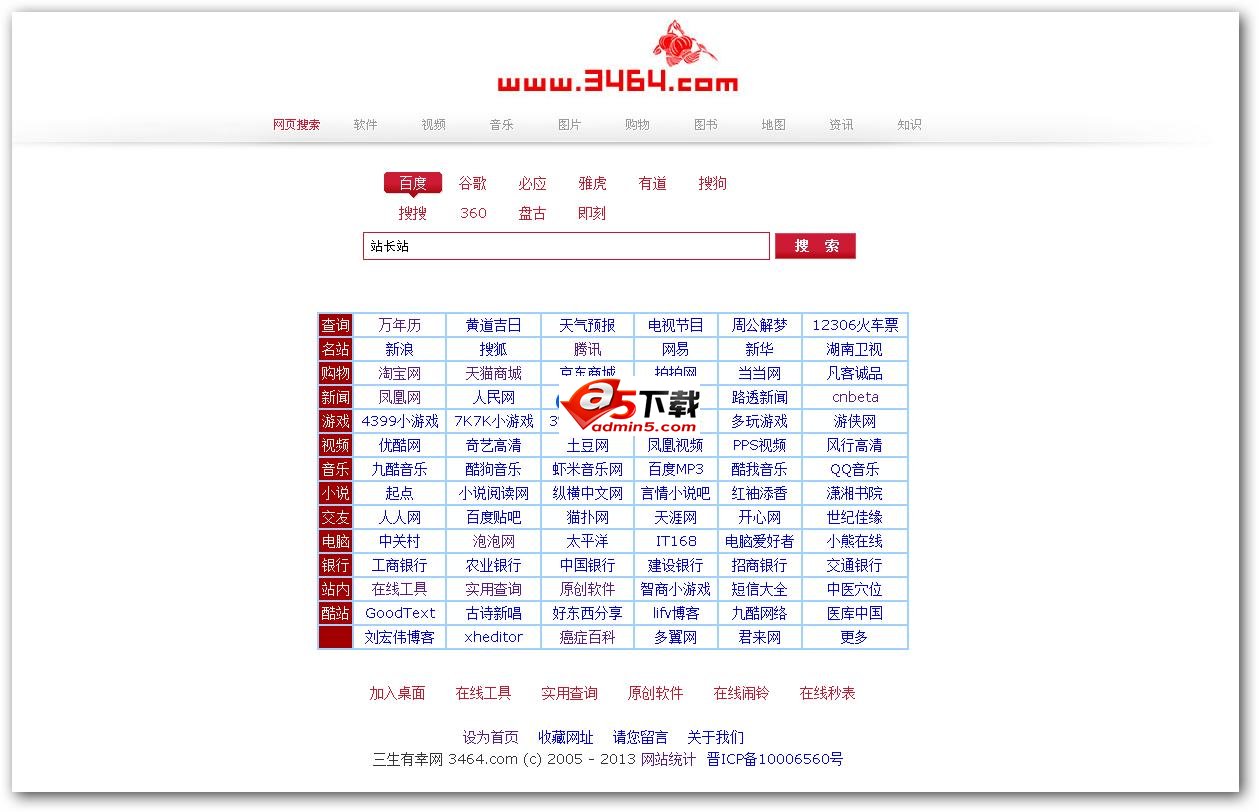 三生有幸网搜索主页,修复了大量无效的搜索引擎接口,为了增加用户体验,首页底部增加了常用查询和在线工具等链接。第一次投稿,望笑纳。