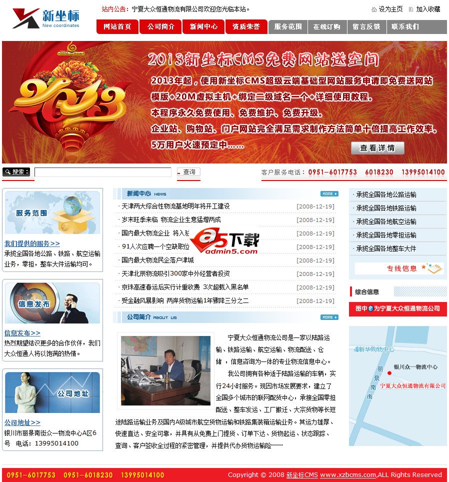 新坐标企业网站管理系统版权归作者所有不得利用本程序从事任何非法活动!本程序功能有限只能满足基础型企业网站的建站需求,无法满足更搞要求的企业站,也无法利用本程序制作门户网站,更不能建站购物站。为了克服以上技术局限,我们开发了“新坐标CMS-超级云端网站管理系统”,可以满足任何要求的企业网站,也可以制作购物网站,同时还可以制作门户型网站。其标签式调用方法让您随心所欲调用想要的结果。