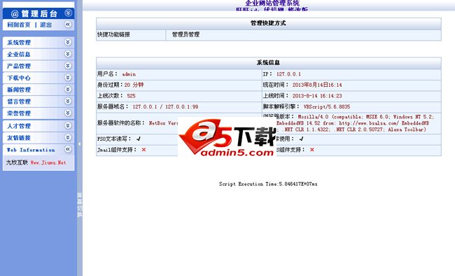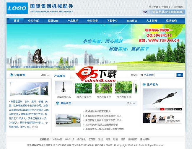 蓝色主题配件企业网站源码说明 程序试用后台:http://你的域名/admin/login.asp 后台登陆帐号:admin 密码:admin