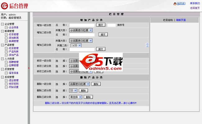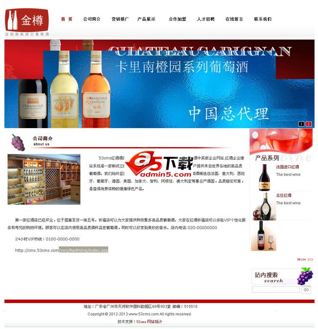 后台演示地址:http://cms.53cms.com/cms/RedWine/system/index.asp