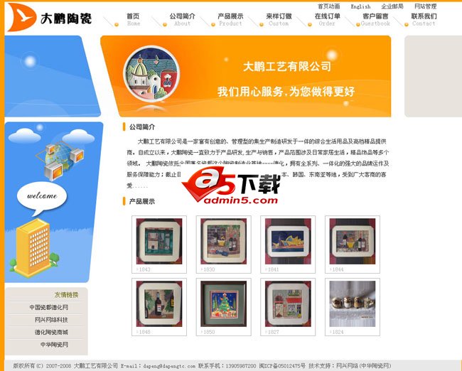 陶瓷工艺公司整站源码下载,用户名:admin 密码:admin 后台地址:admin
