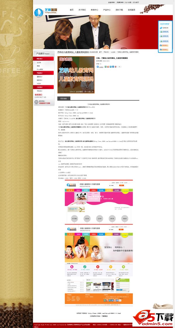 艺帆咖啡公司咖啡机生产企业网站源码,正式上线服务广大用户,全站DIV+CSS首页漂亮的Flash幻灯,便捷的后台管理,强大的功能体现。