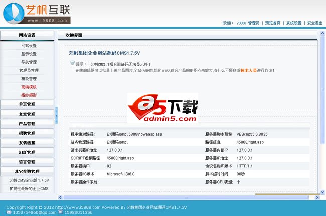 艺帆CMS是由艺帆互联开发,用于服务广大互联网工作者.简单易用,高扩展性是艺帆CMS的特征,艺帆的主旨是打造最适合大众的免费cms,企业cms,免费网站模板,免费的网站制作软件