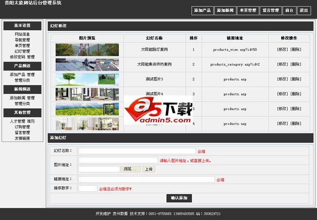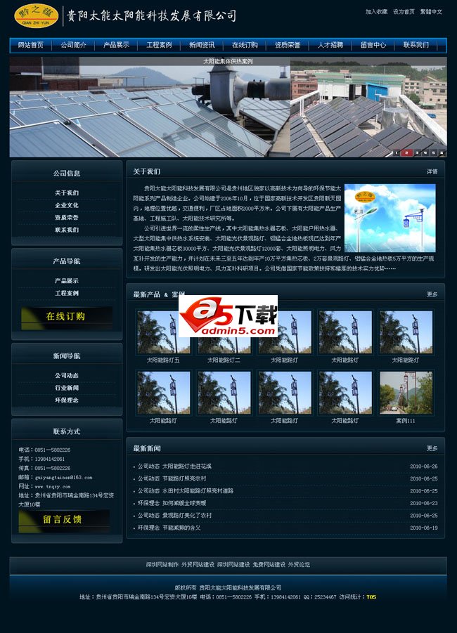 贵阳太能深蓝色企业网站网站是基于asp+access的企业网站源码,数据库已设有有防下载,网站更安全。 网站源码程序完整,后台功能强大。