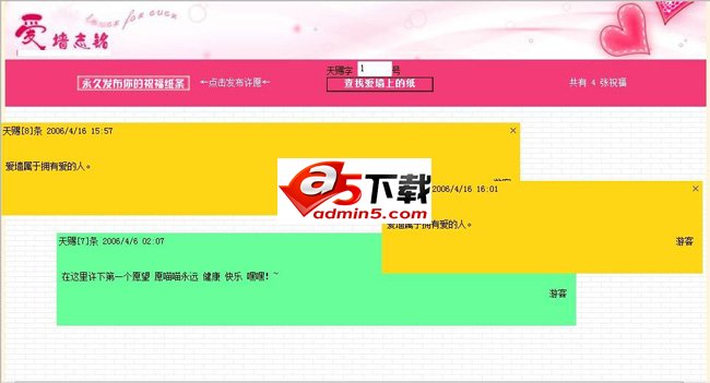 互联网免费许愿墙ASP开发完成。 后台地址admin.asp 后台管理用户 admin 密码:admin