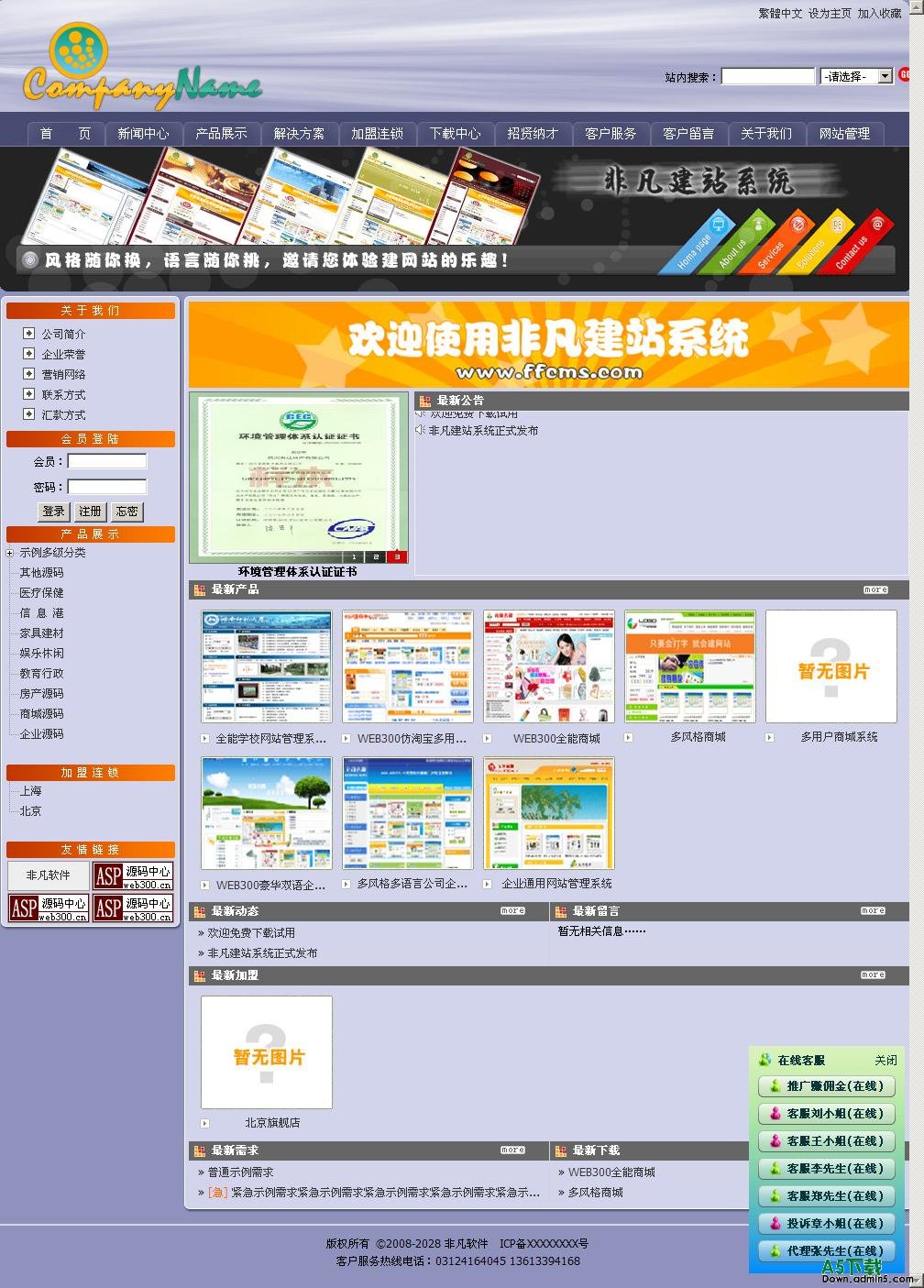 这是迄今为止最受欢迎的一套网站程序。可以说它集目前所有的网站功能于一体,同时可根据个人的喜好修改网站的信息,定义风格,增删栏目、无限级分类、所有信息可设会员查看权限等等,总之你想怎么改就怎么改!纯DIV+CSS设计,兼容IE6,IE7,FireFox等流行浏览器。内置七套免费模板,随时实现网站换肤!