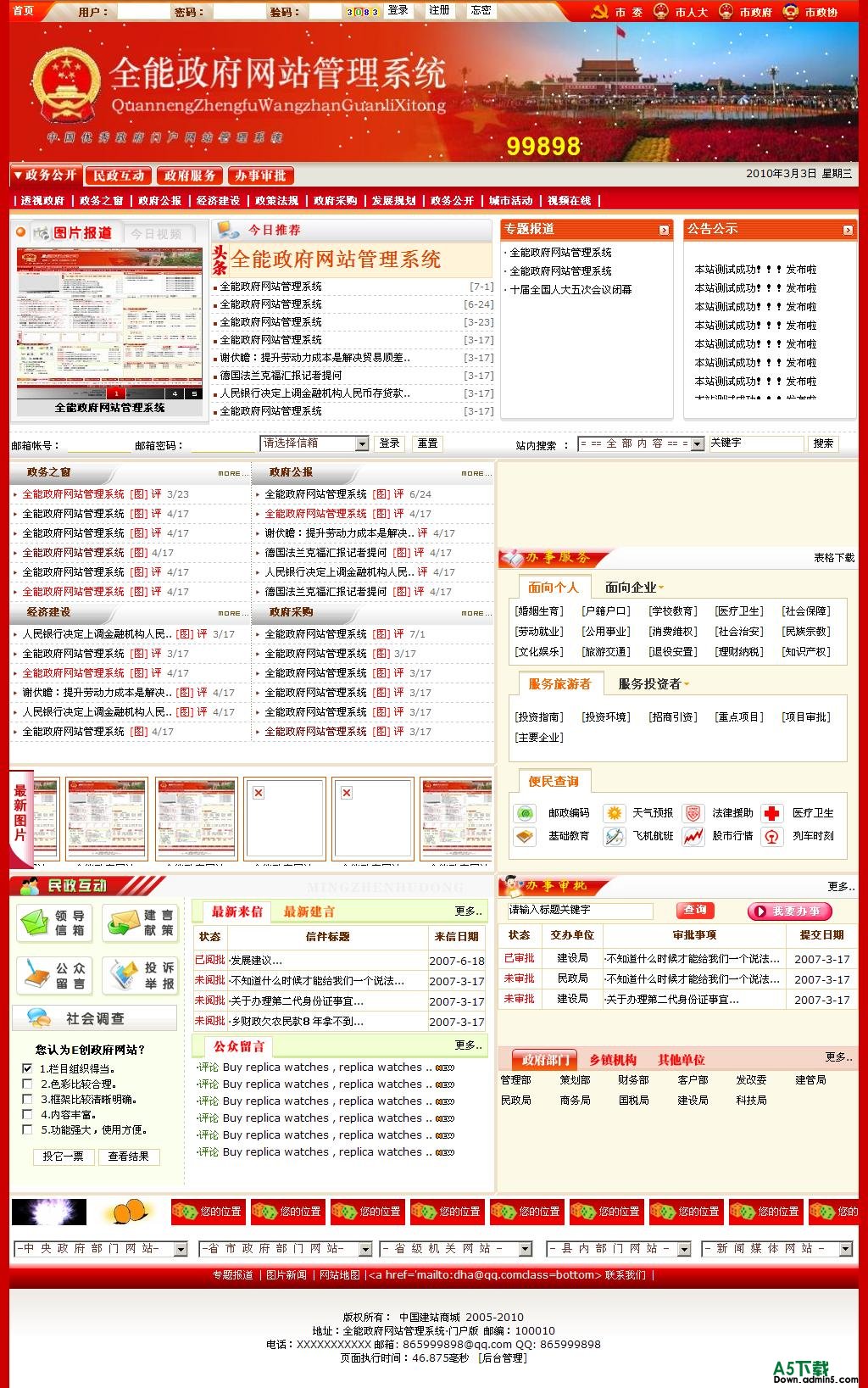 ③言论管理:1、留言管理 2、评论管理 3、 市长信箱 4、投诉举报 5、建言献策。