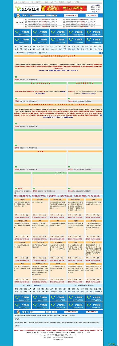 东京城信息网v4.0 修正了很多BUG和程序美化问题 头部导航文件在 skin/style4 LOGO文件在 skin/default 通用广告和20个小的广告位置在 后台广告管理中修改!