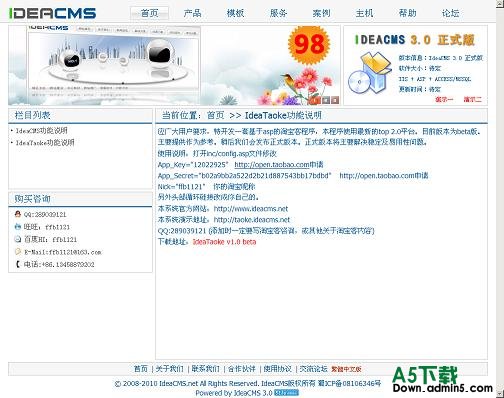 应广大用户要求,特开发一套基于asp的淘宝客程序,本程序使用最新的top 2.0平台。目前版本为beta版。主要提供作为参考。稍后我们会发布正式版本。正式版本将主要解决稳定及易用性问题。