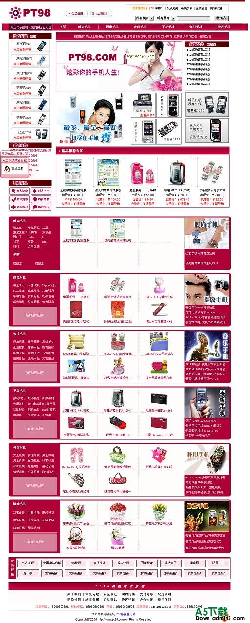商城整站源码为网络整理而来,运行环境ASP+ACCESS.是一款功能强大,模版漂亮的手机网上商城系统。 后台支付分为:支付宝设置 声讯短信支付 银行帐号设置 货到付款设置 此程序由www.pt98.com测试后无错提供发布,希望对你有用。 网站后台管理目录:你的域名/admin 管理员账号,密码,路径,都是:admin